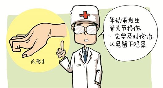 武汉一名中年男人儿时不小心跌伤了左手臂膀肘,经当地医师“摸骨复位”后未再医治。40年曩昔,现在早已成人的他左手竟萎缩得像鸡爪相同。
