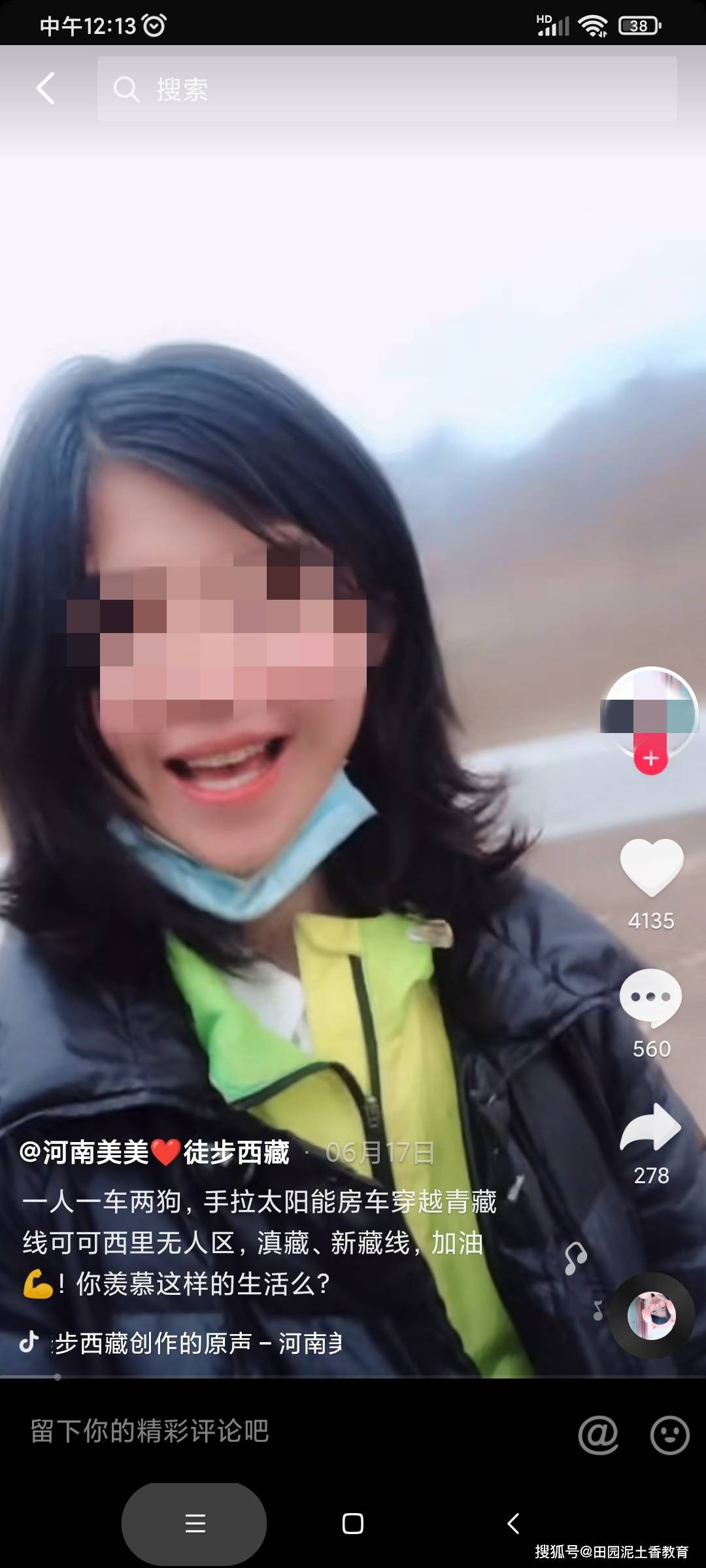 遭遇不幸的女孩的抖音账号为“河南美美徒步西藏”,粉丝有8.5万。在账号中,她称自己来自河南一个偏远的小山村,喜欢简单的生活和简单的人。