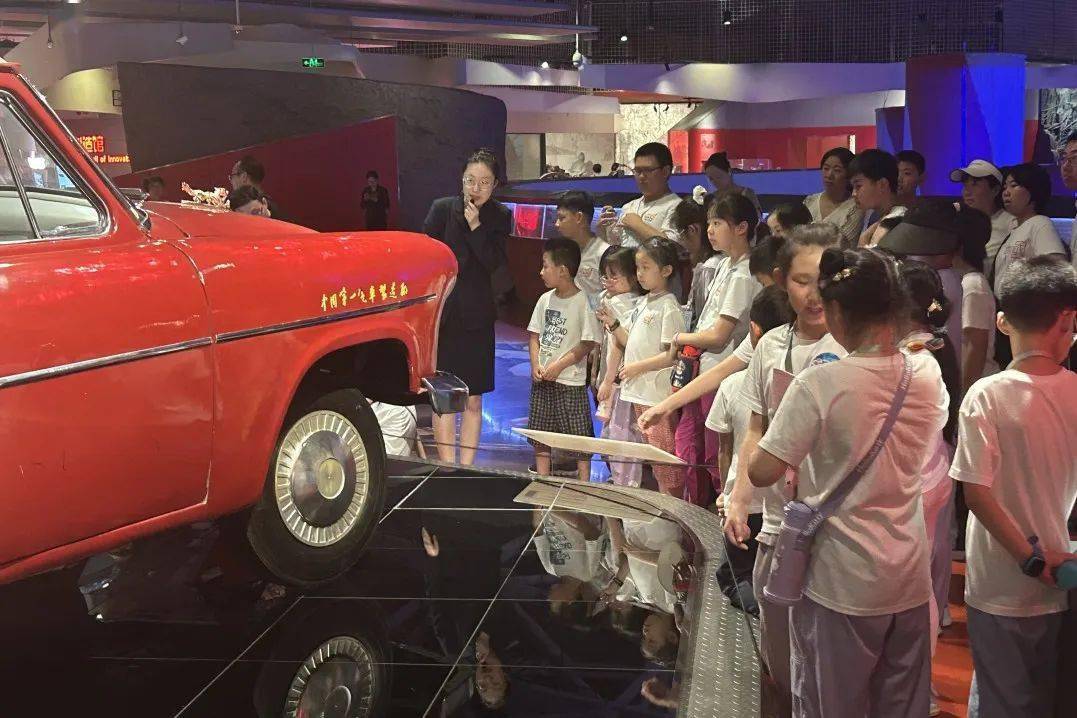 参观期间,场馆讲解老师带领孩子们分别游览了汽车创造馆、进步馆、未来馆,涉及汽车发展历史、国内外汽车技术、未来汽车科技等内容。跟随讲解老师的介绍,中国指南车、记里鼓车、奔驰一号、解放牌卡车、红旗轿车等国内外不同历史时期的汽车,和汽车用品、汽车艺术品和品种繁多的汽车衍生品,一一呈现在孩子们眼前。
