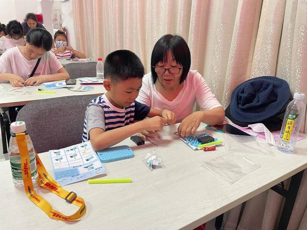 老师首先为小朋友们讲解了小台灯的构造以及发光原理。之后的制作环节,大家亲自动手、小心操作、不断尝试,做得非常认真。其间,一位小朋友在操作过程中由于处置不当,造成了线路短路,最后在老师的耐心指导下,小台灯被成功点亮。