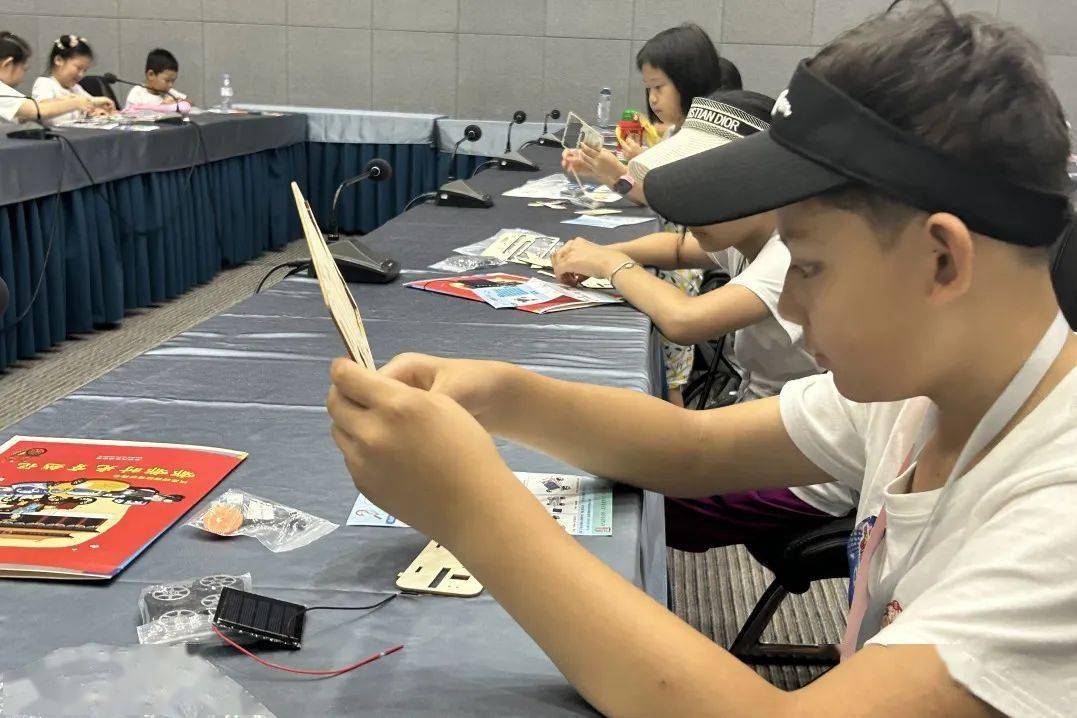 随后,研学活动进入“太阳能动力车”制作环节。学生们纷纷化身小小汽车工程师,在科普老师的指导下,亲自动手组装了“太阳能动力车”。太阳能板、发动电机、轮胎等零件,在孩子们的手中很快便被组装在一起,一辆辆完整的“太阳能动力车”也接连出现在孩子们的制作台上。