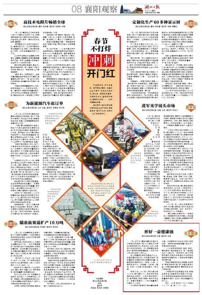 2月5日,《湖北日报》图文报导元大粮油榨好一壶健康油,新年不打烊,冲刺开门红!